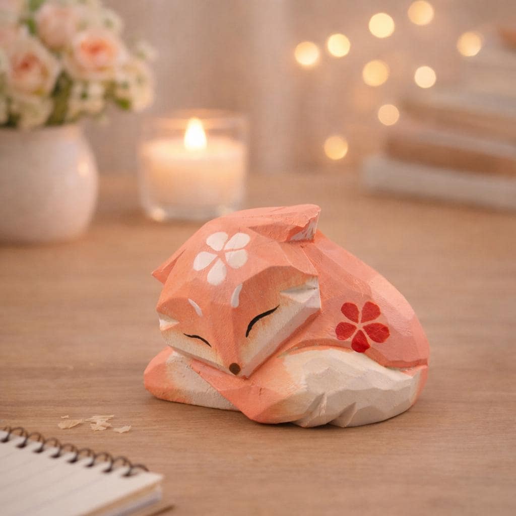 Bring a sense of calm and warmth into your space with this hand-carved sleeping fox wooden figurine. With its eyes gently closed and body curled up, this small fox captures a peaceful, cozy moment that adds a soft, comforting touch to any setting.